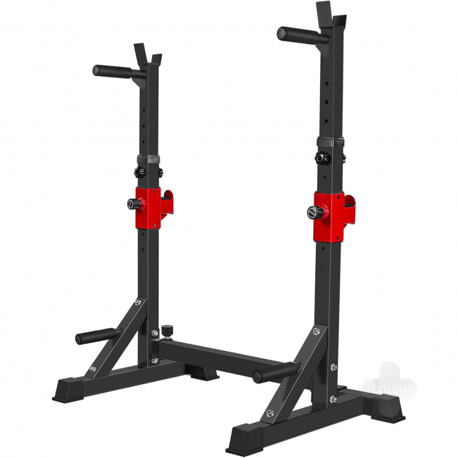 Многофункциональная стойка для штанги 3-в-1: позволяет легко выполнять различные упражнения, включая жим лежа, жим от плеч, приседания, подъемы над головой, упражнения со штангой, отжимания на брусьях, подтягивания, отжимания. Высота регулируется от 109,7 до 181,9 см, 15 уровней; а ширина от 71,8 до 122,2 см, 4 уровня.